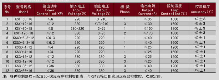 KSG系列、KSY系列温度控制器,均为各种系列实验室电炉配套的简易式专用控制设备,结构简单,操作方便。KSG系列是通过温度有指示调节仪和接触器的作用、来控制对电炉供电。KSY系列是通过改变可控硅元件导通角的大小,来调节输出功率,控制精度较高。上述二个系列的温度控制器均需与热电偶配合使用,对电炉的温度进行测量、指示和自动控制。KSG与KSY系列是数显式温度控制器,不仅能自动测量、控制电炉温度,尚能对炉膛温度进行显示。